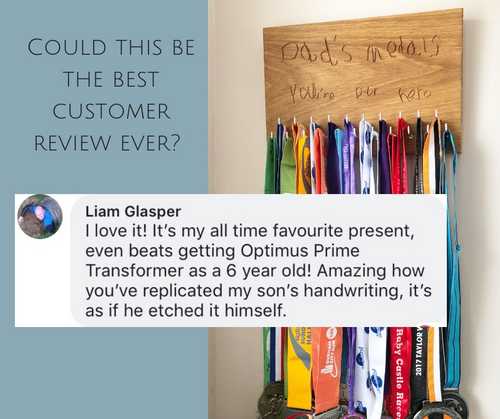 - Start by placing your order for a chopping board, medal display, photo frame or any other personalised item from the Hugo's Workshop website