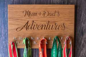 I have a whole heap of medals which I love to have up on display. My engraved wooden medal hangers are actually my most popular item. They can be personalised to say anything you like on them. Most people choose the recipient’s name with a motivational phrase underneath. Others get their children’s handwriting engraved onto the hanger which creates a stunning unique present for sporty mums and dads.