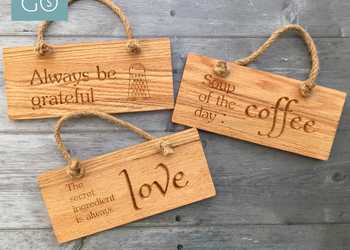 If you’re looking to get some beautiful decor around your kitchen, and are wishing to add a little humor, why not check out our solid oak engaged rope hanging signs? There’s the opportunity for some great kitchen humour, with the classic ‘Sometimes I cook with wine…’ or ‘The secret ingredient is always love’ or you can create your own quote, guaranteed to bring a little laughter into your day.