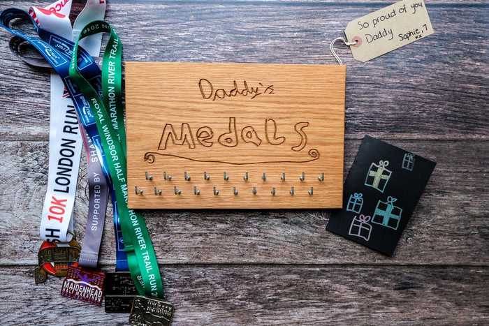 If Daddy is more of an action man, then take a look at our handwritten medal displays. You can add names, pictures or an inspirational message.