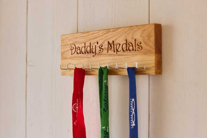 Some dads are sporting superheroes, with enough medals to decorate a small army. My solid oak medal hanger is the perfect way to give medals pride of place at home. Plus, they can be personalised with engravings on the front and/or back.