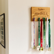This sleeker edition of our larger handcrafted solid oak medal hanger features a single row of hooks and gives your favourite medals the recognition they deserve… The perfect alternative to being left on the shelf or in a kitchen drawer!